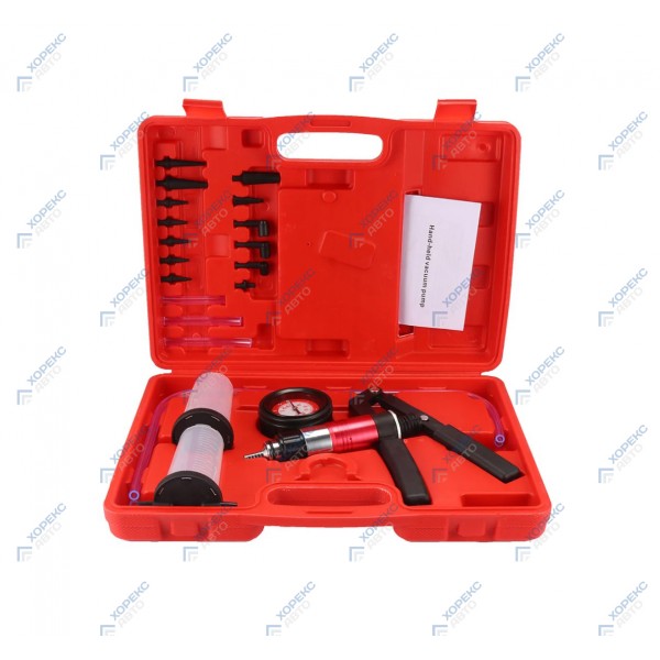 Индикатор вакуумный для проверки герметичности системИндикатор вакуумный служитДля измерения разряжения в различных вакуумных магистралях — в частности во впускном коллекторе для проверки на наличие утечек, оценки работы клапанов и правильности установки угла опережения зажиганияДля создания разряжения с помощью ручного насоса для управления различными исполнительными устройствами, управляемыми вакуумом, проверки датчиков давления/разряжения и т.д.Для прочих операций — откачки жидкостей, прокачки тормозов и т.д.Для измерения герметичностиТехнические характеристики:Давление варьируется от -1 бар до 3 бар.Комплектация:вакуумный насос с манометромемкость для жидкости2 шланга 600 мм1 шланг 90 мм1 шланг 80 мм1 шланг 60 мм10 прижимных наконечников различной конфигурации3 переходника для тормозной системы4 переходника для шлангов различного диаметра